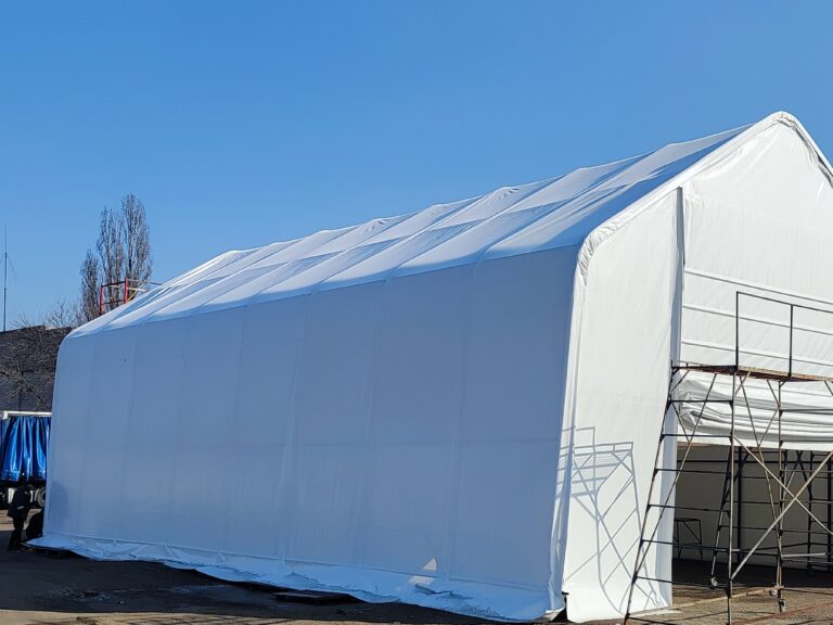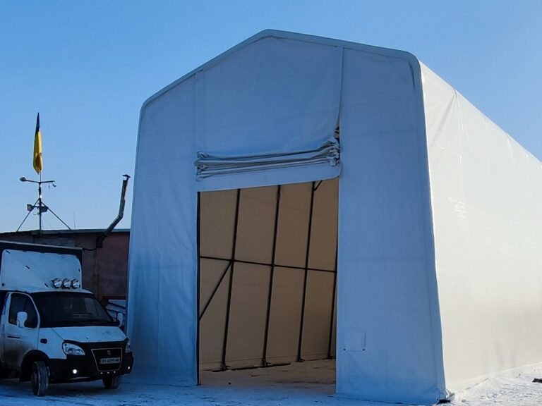 Двускатный ангар — это быстровозводимая конструкция из металлического каркаса и прочного тентового покрытия. Он отличается характерной крышей с одним или двумя скатами, что делает его особенно устойчивым к осадкам и ветровой нагрузке. В отличие от арочных или дуговых моделей, скатный ангар сочетает в себе простоту конструкции и максимальное удобство эксплуатации.