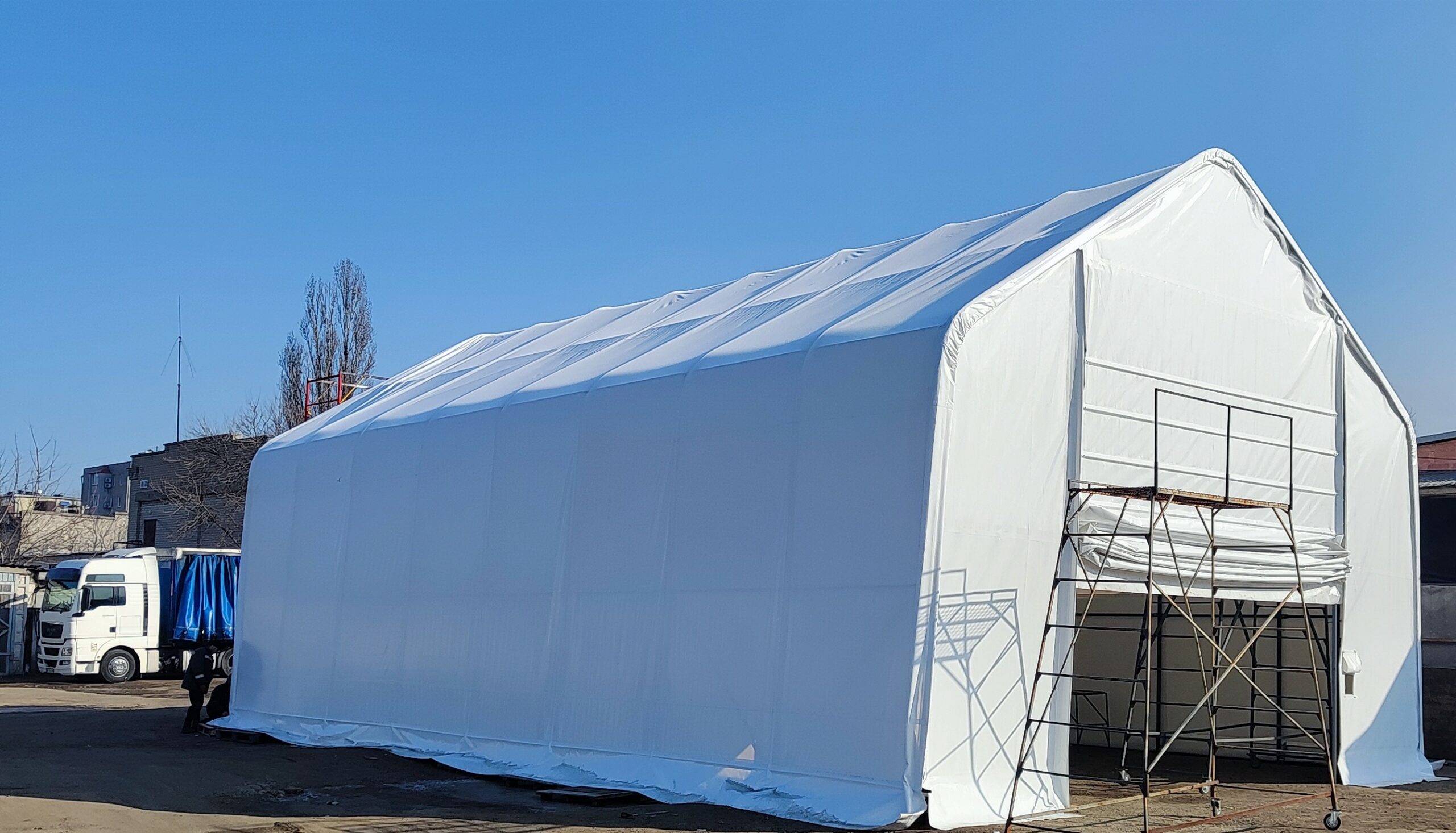 Одновременно лёгкий, простой в сборке и крепкий классический каркас. Благодаря усиленным раскосами углам, выдерживает все нагрузки нашего региона и не требует использования массивных тяжёлых ферм в конструкции. Необходимо подготовить ровную основу под опоры ферм (бетонная или асфальтная поверхность, точечный или винтовой фундамент) Предназначен для ремонта техники, склада, зернохранилища, цеха или животноводчества. Длина от 12 до 50 метров.