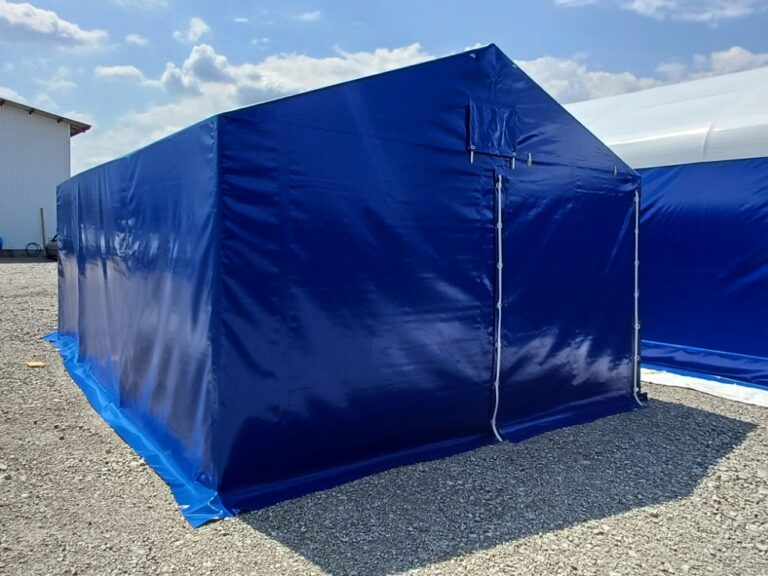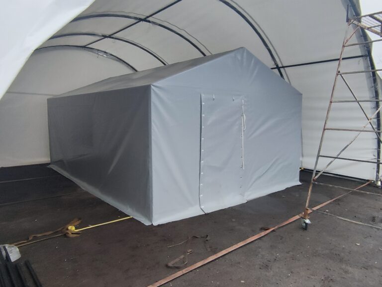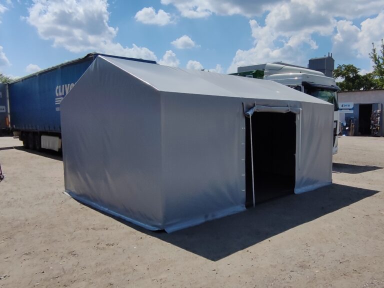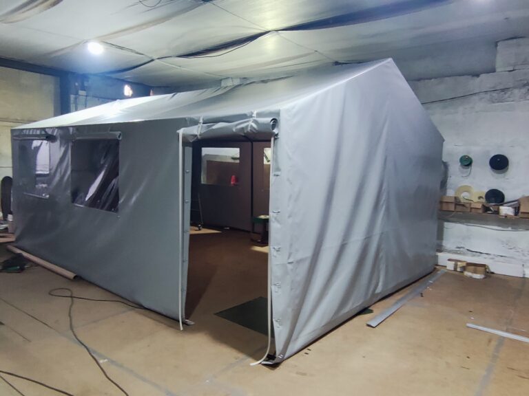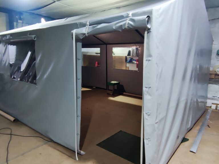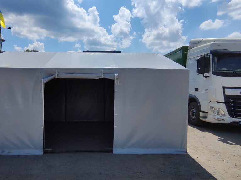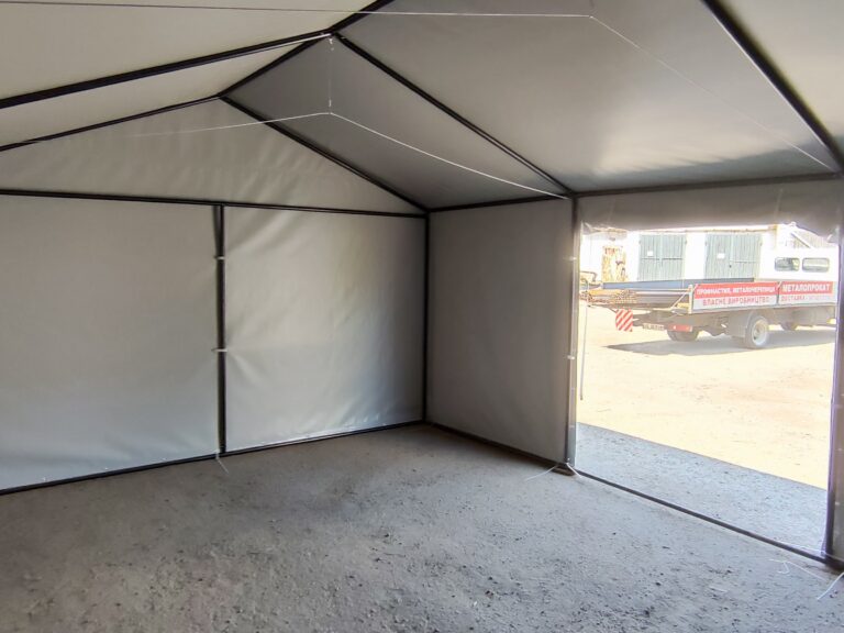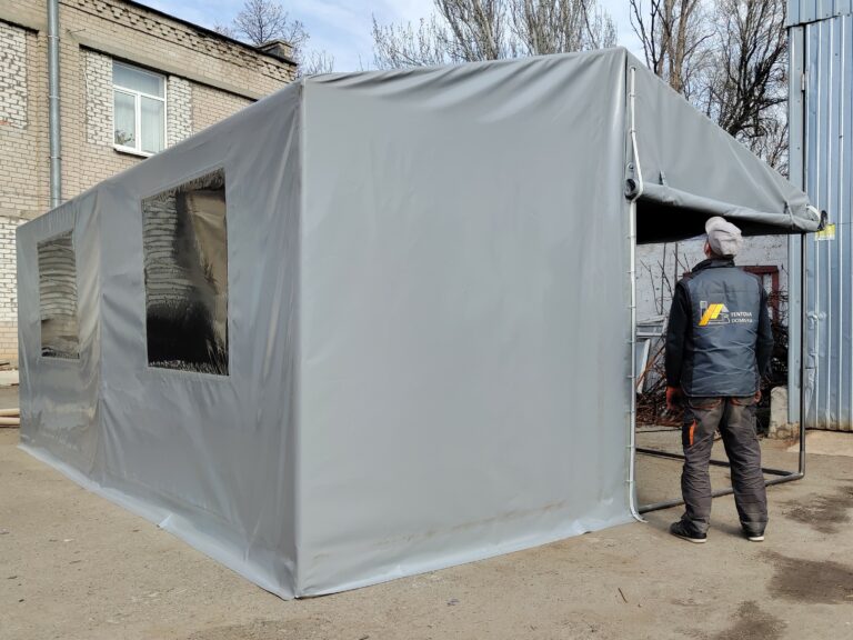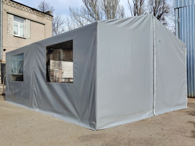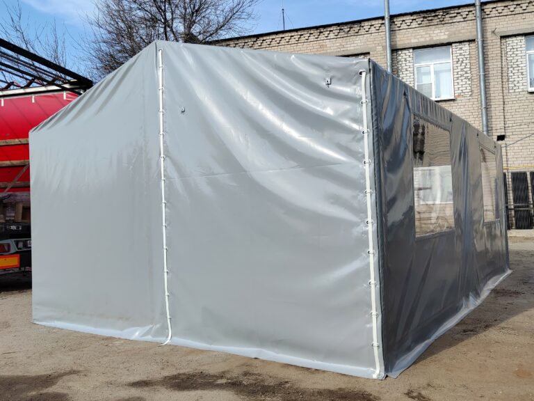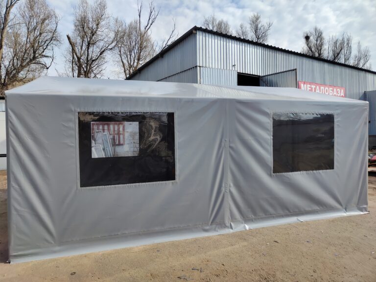 Палатка предназначена для использования как в полевых условиях для военных, медиков, строителей, так и как дополнительное помещение для мастерской, склада, гаража и других целей. Относительно легкий каркас обеспечивает возможность быстрого монтажа/демонтажа палатки, что позволяет использовать палатку в качестве мобильного помещения. Крыша и стены изготовлены из ПВХ ткани плотностью 470 гр/м2. Эта ткань не пропускает влагу, воздух и служит Вам в течение 5-7 лет.