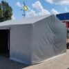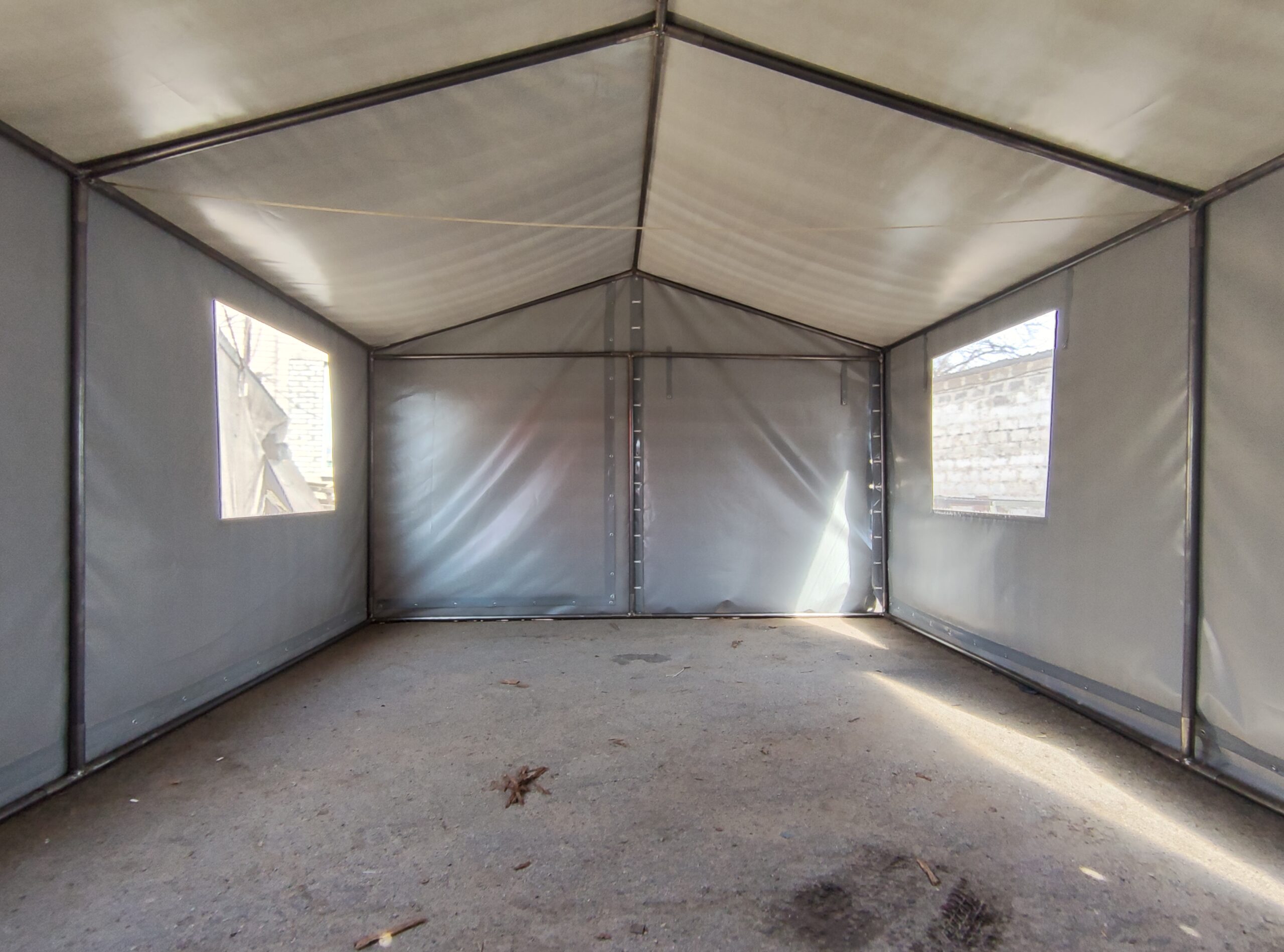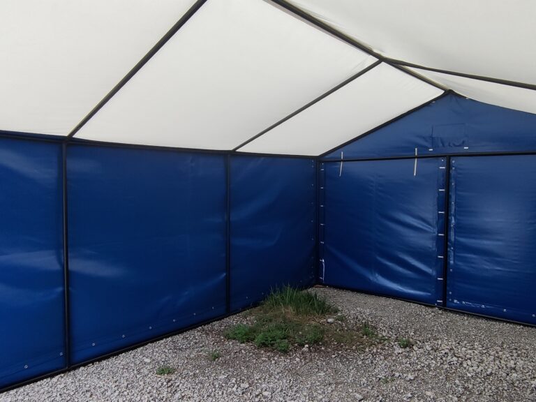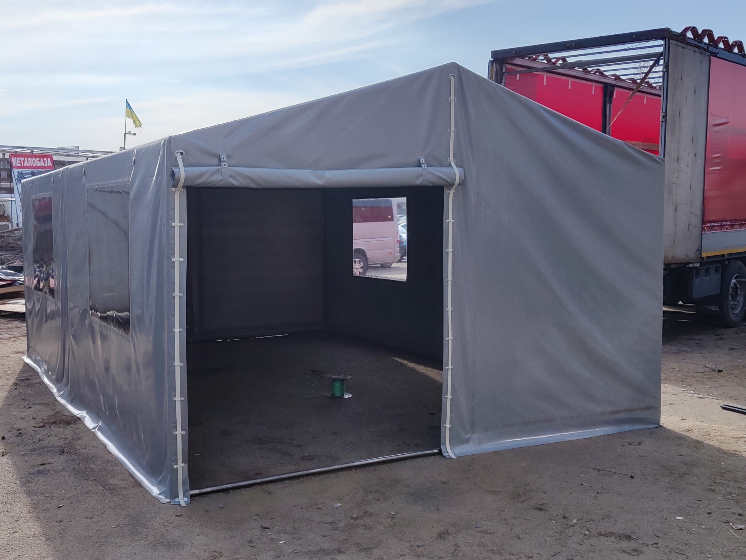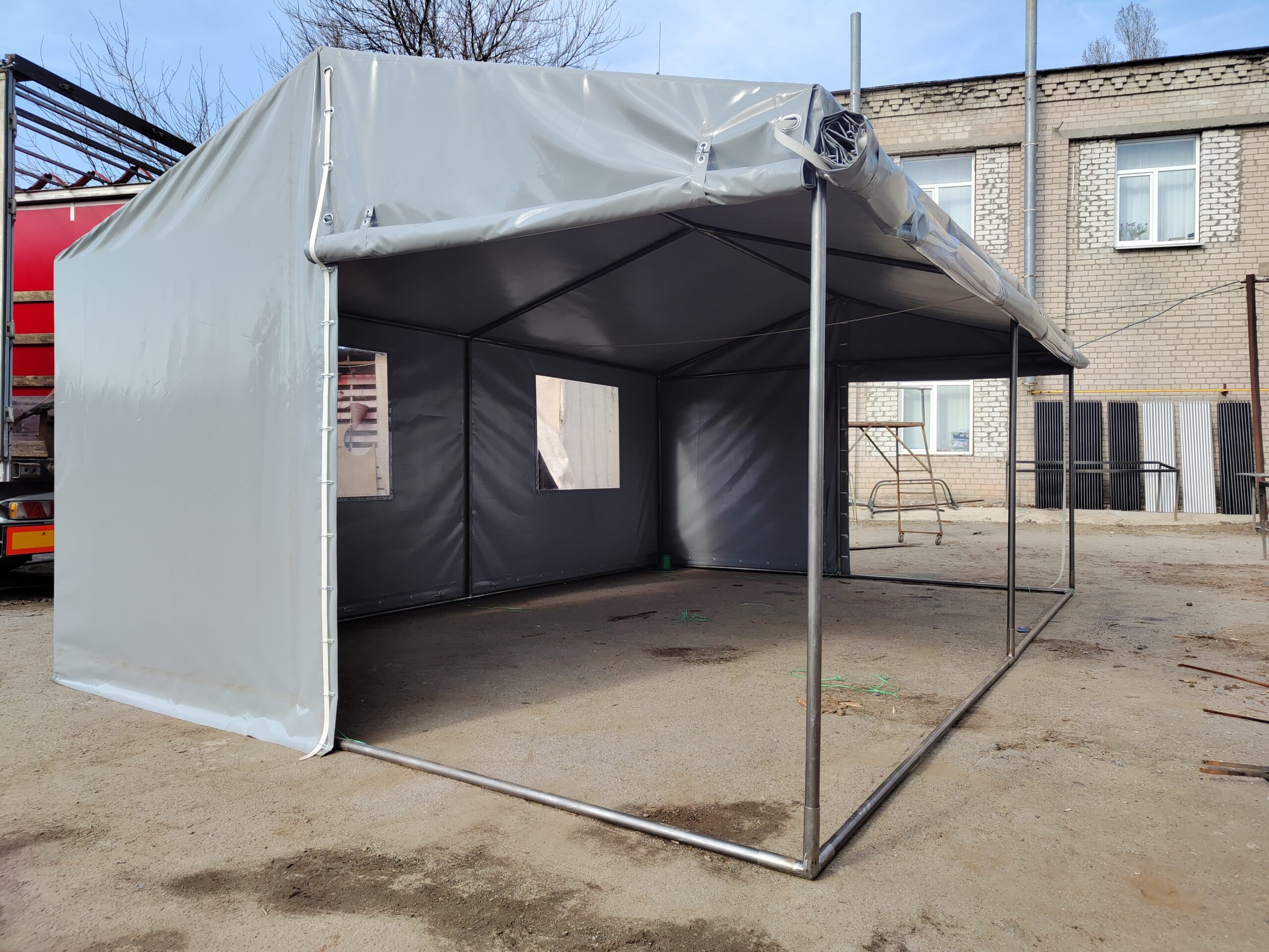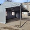 Палатка предназначена для использования как в полевых условиях для военных, медиков, строителей, так и как дополнительное помещение для мастерской, склада, гаража и других целей. Относительно легкий каркас обеспечивает возможность быстрого монтажа/демонтажа палатки, что позволяет использовать палатку в качестве мобильного помещения. Крыша и стены изготовлены из ПВХ ткани плотностью 470 гр/м2. Эта ткань не пропускает влагу, воздух и служит Вам в течение 5-7 лет.