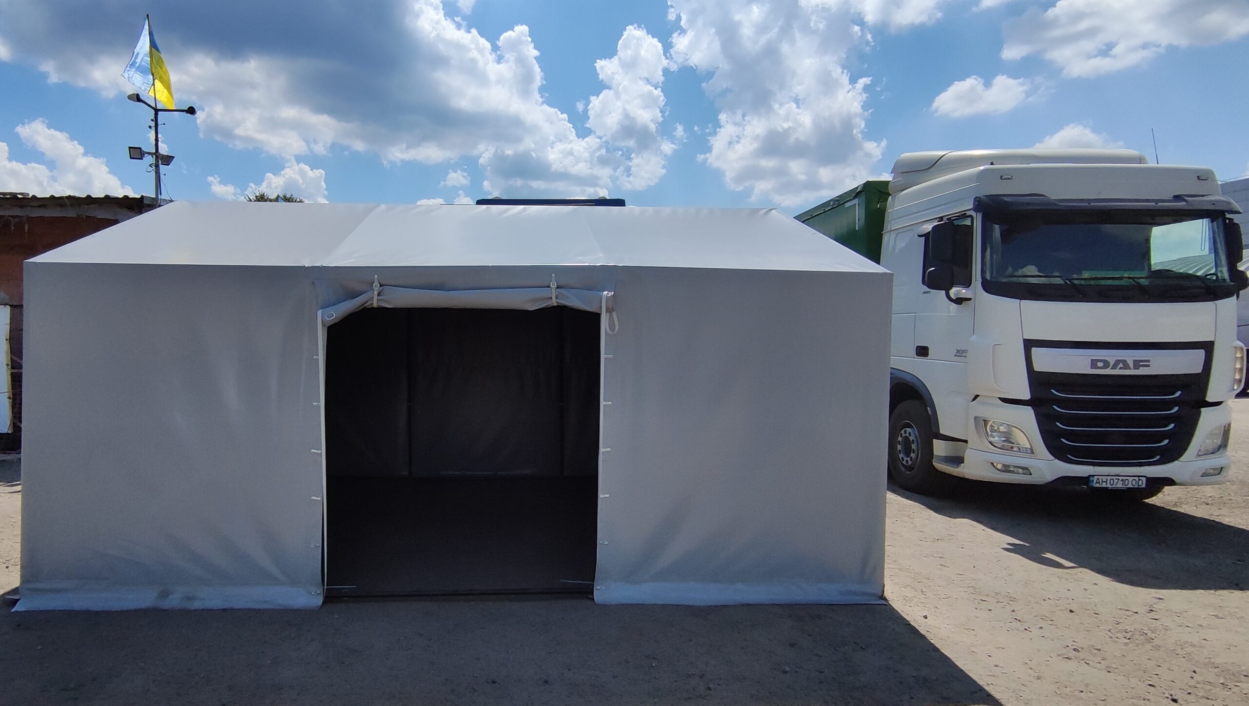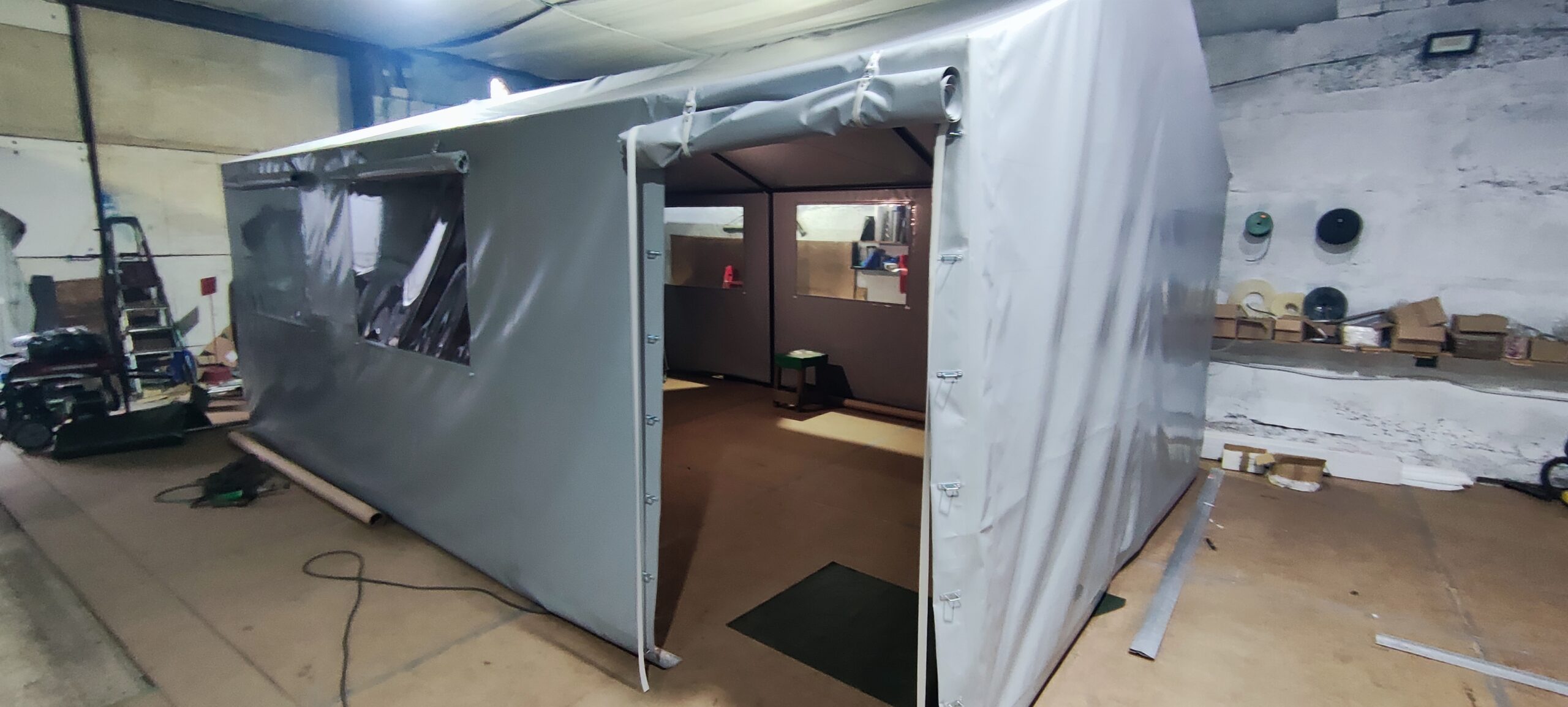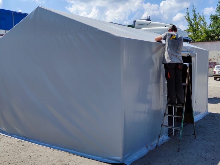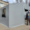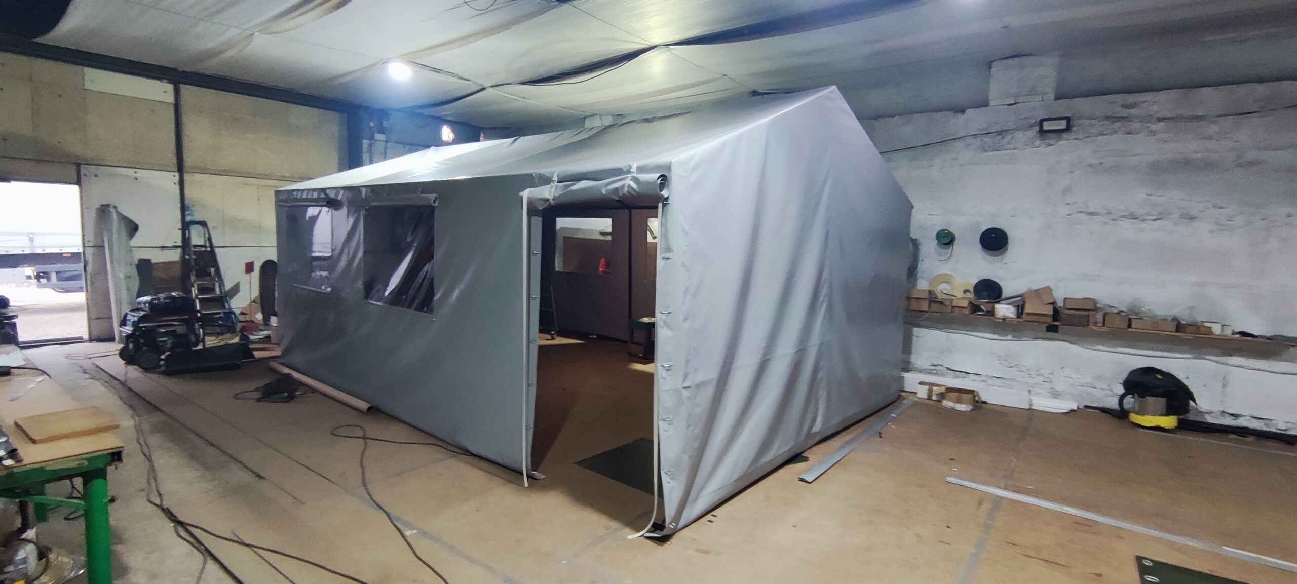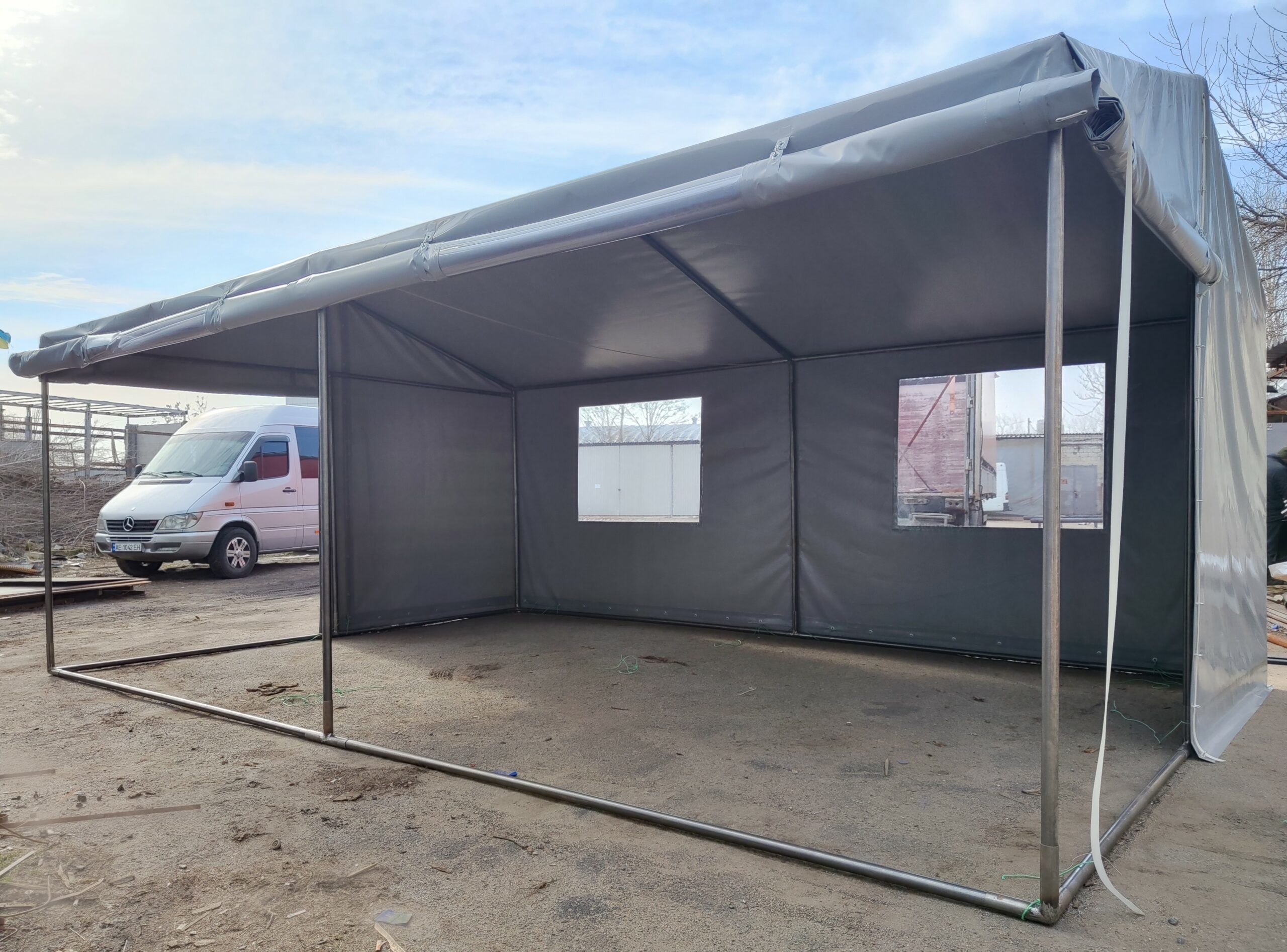 Палатка предназначена для использования как в полевых условиях для военных, медиков, строителей, так и как дополнительное помещение для мастерской, склада, гаража и других целей. Относительно легкий каркас обеспечивает возможность быстрого монтажа/демонтажа палатки, что позволяет использовать палатку в качестве мобильного помещения. Крыша и стены изготовлены из ПВХ ткани плотностью 470 гр/м2. Эта ткань не пропускает влагу, воздух и служит Вам в течение 5-7 лет.