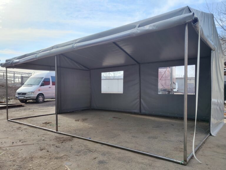 Благодаря использованию качественной ПВХ ткани эту палатку можно использовать в любое время года. Особенность этой конструкции – изготовление палатки таким образом, что можно приподнять отдельно одну, две или три стенки, что позволяет использовать палатку круглый год. ПВХ ткань производится в разных цветах, поэтому вы можете заказать палатку любого цвета. По желанию заказчика мы можем вносить изменения в конструкцию палатки.
