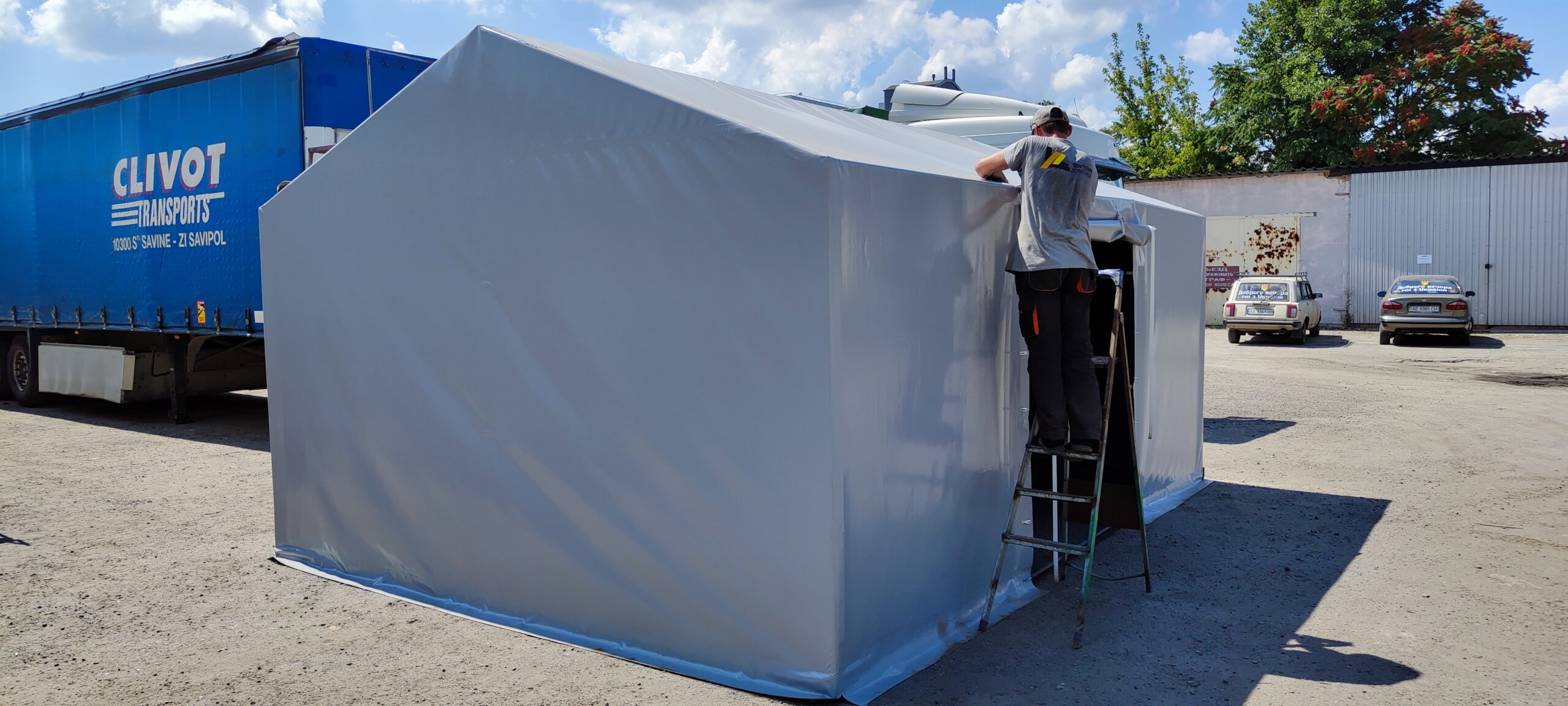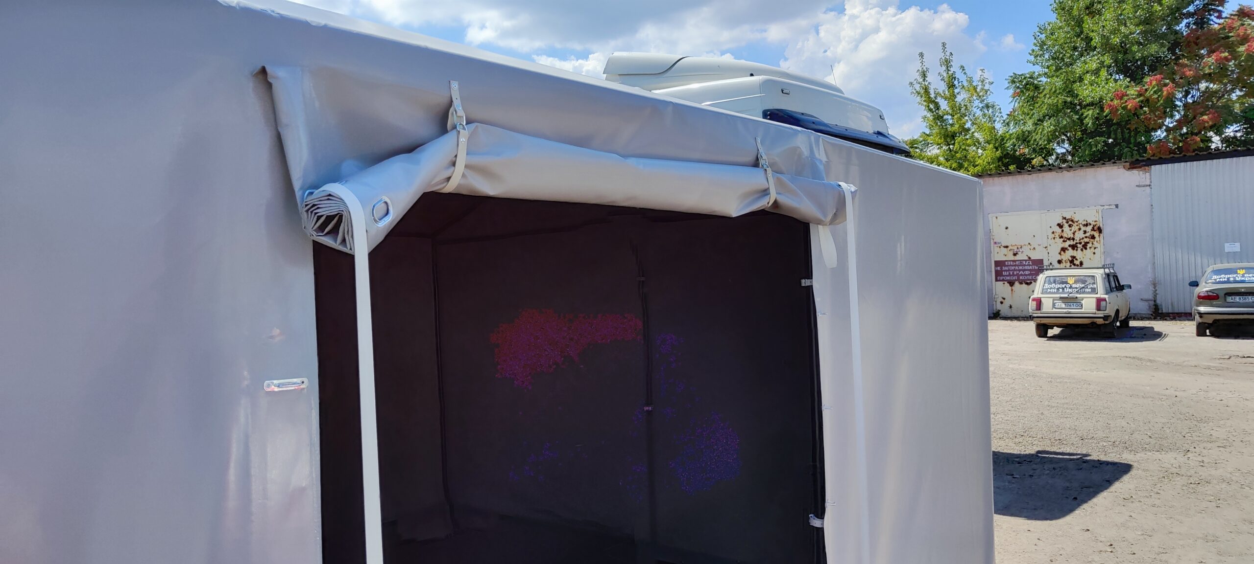 Наружный тент из ПВХ ткани: 1шт. вес: 40 кг плотность 470 гр/м2