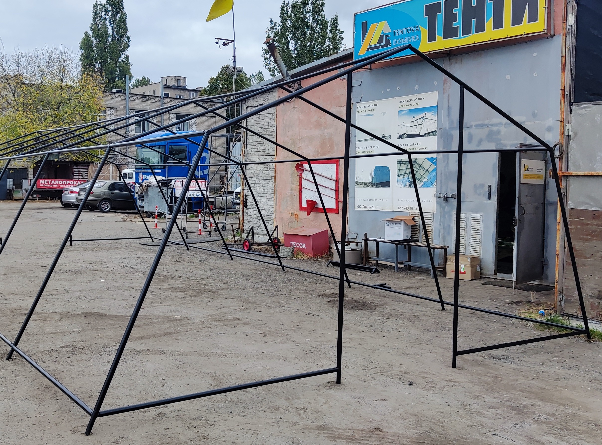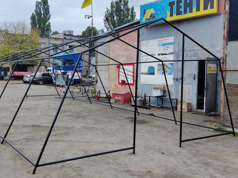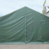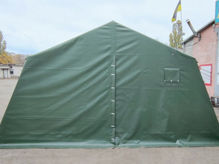 Палатка предназначена для использования как в полевых условиях для военных, медиков, строителей, так и как дополнительное помещение для мастерской, склада, гаража и других целей. Относительно легкий каркас обеспечивает возможность быстрого монтажа/демонтажа палатки, что позволяет использовать палатку как мобильное помещение. Крыша и стены изготовлены из ПВХ ткани плотностью 650 гр/м2. Для этих тканей тканей характерна высокая механическая прочность, длительная эксплуатация изделий, а также устойчивость к выгоранию и загрязнениям. Они могут эксплуатироваться при диапазоне колебаний температур от -40 до +70 градусов Цельсия. Тентовые ткани обладают рядом характеристик, благодаря которым обладают высокой долговечностью. Текстиль изготовлен из 100% полиэстера высокой прочности, покрыт высококачественным ПВХ с обеих сторон, а также защитным слоем лака. Это обеспечивает защиту от влаги, стойкость к ветровым нагрузкам, выгоранию, перепадам температуры. Срок службы тента из ПВХ ткани более 5-7 лет при активной эксплуатации.